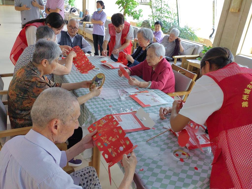 活动之余,同学们和老人一起制作中秋灯笼,中国红的灯笼让现场透着浓浓的节日气息,传递着问候和祝福。最后,同学们与老人们合影留念,记录这美好的一刻。