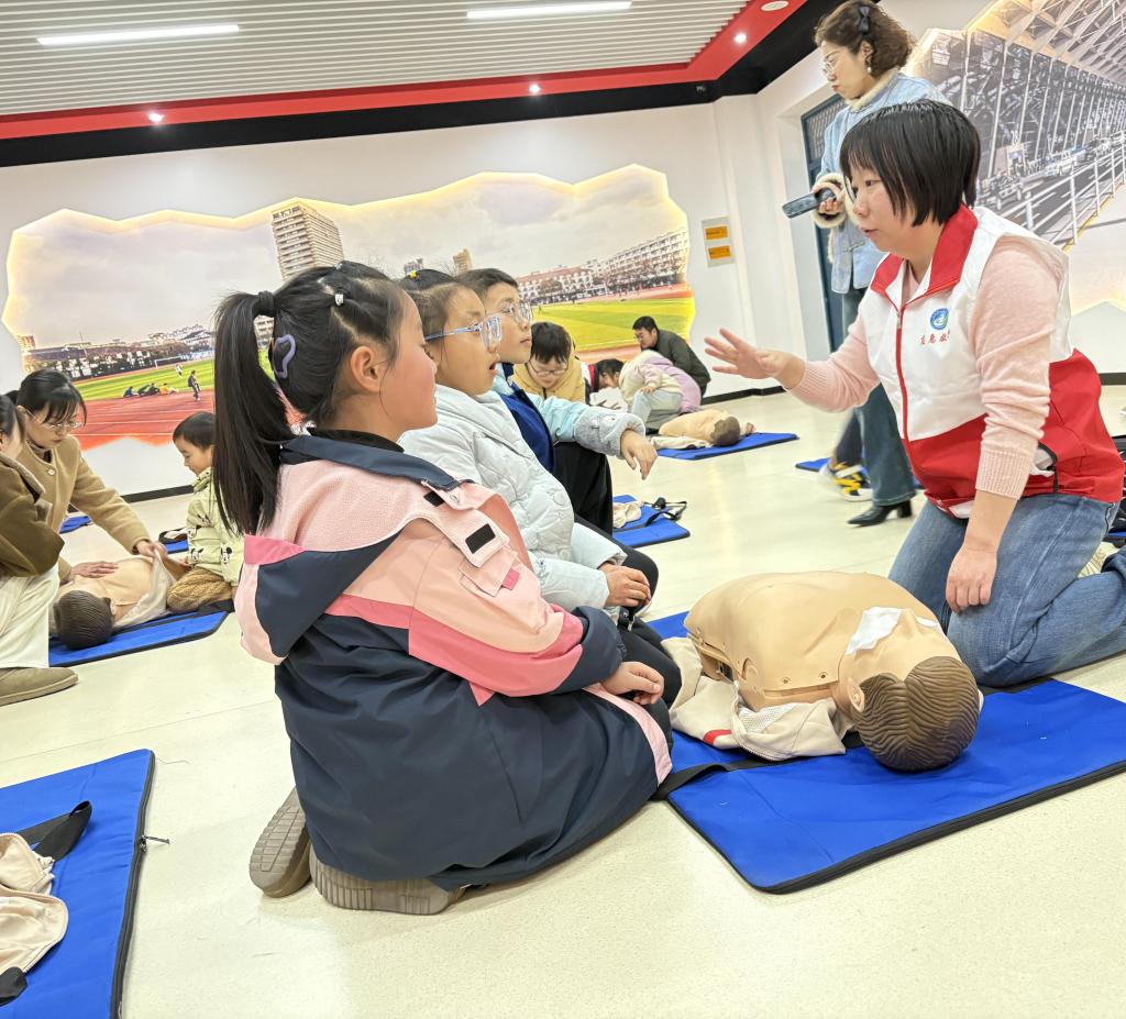 随后,在老师的精心指导下,孩子们被分成小组,开始了心肺复苏与AED使用的实操练习。他们面对模拟的人体模型,小手坚定地按压、吹气,每一个动作都力求准确,每一次实践都是对生命尊重的深刻体现。每当成功完成一次急救流程,他们的脸上都会绽放出自信而骄傲的笑容,那是对自我能力的肯定,也是对生命价值的深刻理解。通过这次体验,急救知识的种子在孩子们心中生根发芽,责任与担当的意识也在他们幼小的心灵里悄然绽放。