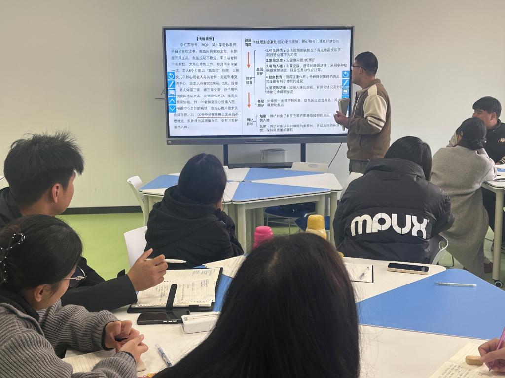 课堂伊始,王老师先是以当前社会老龄化日益加剧的现实情况作为切入点,用一组组详实的数据,向同学们直观展现了老年人健康照护需求不断攀升的严峻态势。这让同学们深刻认识到掌握老年人持续性照护计划制定技能的重要性与紧迫性,瞬间将大家带入到浓厚的学习氛围当中。