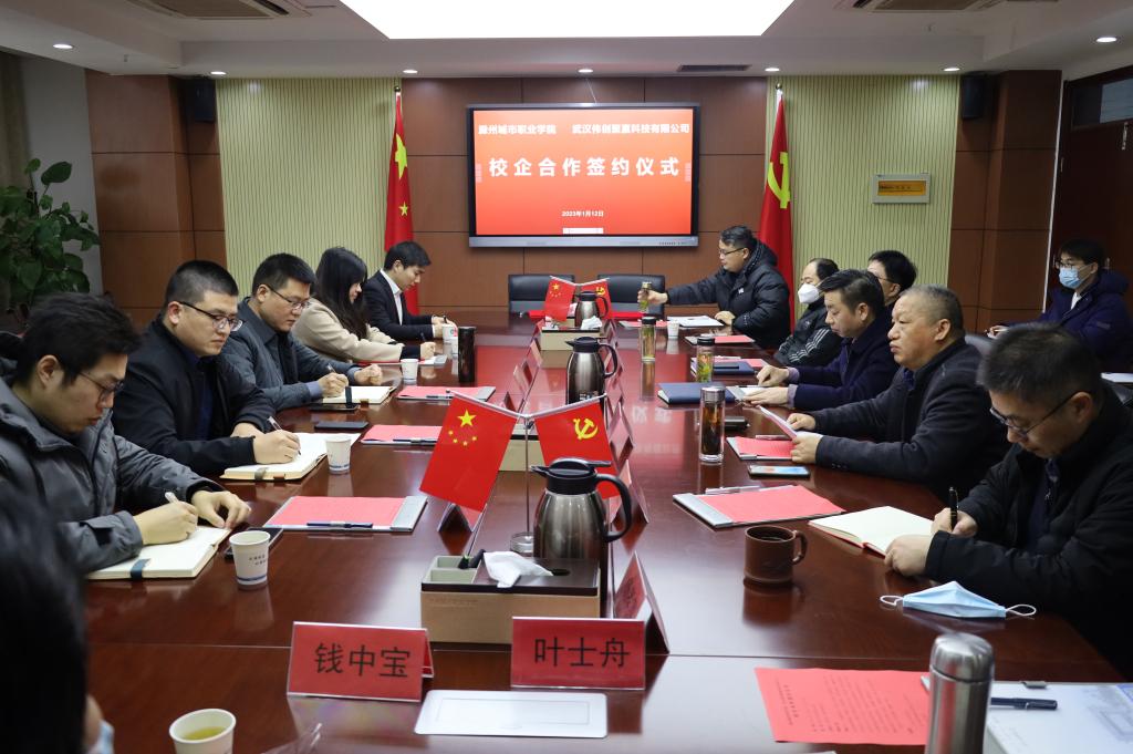 1月12日,我校与武汉伟创聚赢科技有限公司、安徽中科英才科技发展有限公司校企合作签约仪式在第四会议室举行。党委副书记、校长汪上出席签约活动并讲话。武汉伟创聚赢科技有限公司总经理陈强、安徽中科英才科技发展有限公司总经理谢绍华等企业代表出席签约活动。仪式由党委委员施向阳主持。仪式上,施向阳致欢迎辞,并介绍了学校的基本情况。在总结讲话中,施向阳对协议履行、人才培养、实习就业、实验实训室建设、学生管理等方...
